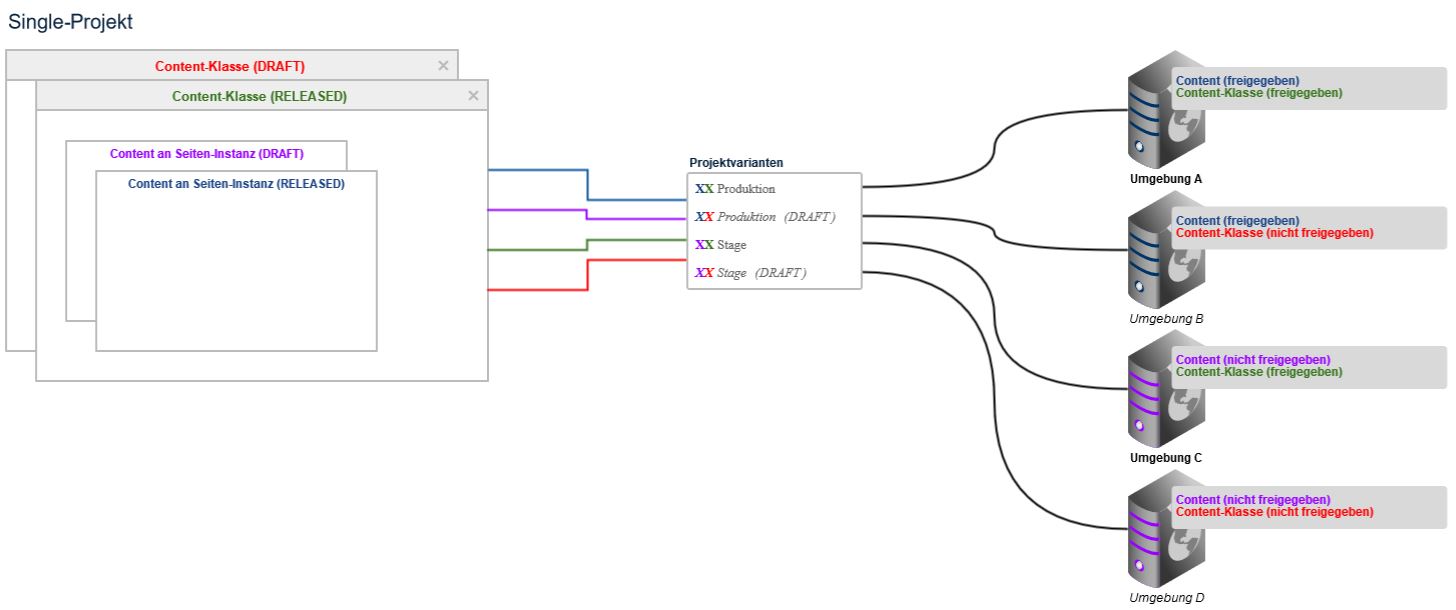 Somit ist man in der nun in der Lage, für unterschiedliche Anforderungen aus einen Projekt, mehrere Stände der Inhalt oder Templates auf eine dafür eingerichtete Umgebung elegant auszuspielen ;)